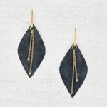 Earrings are made with leather and brass.
